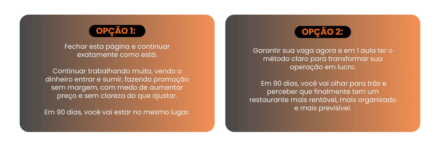 Se você escolher depois, vai pagar mais caro e continuar perdendo dinheiro todos os dias no cardápio, no preço e na operação.